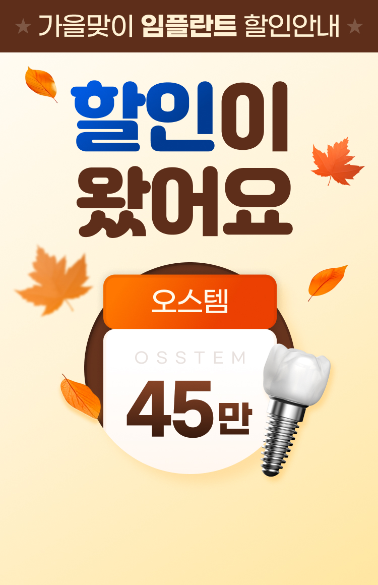 • 임플란트 시술 시 교합이상,신경손상,염증 등의 문제점이 발생할 수 있습니다.